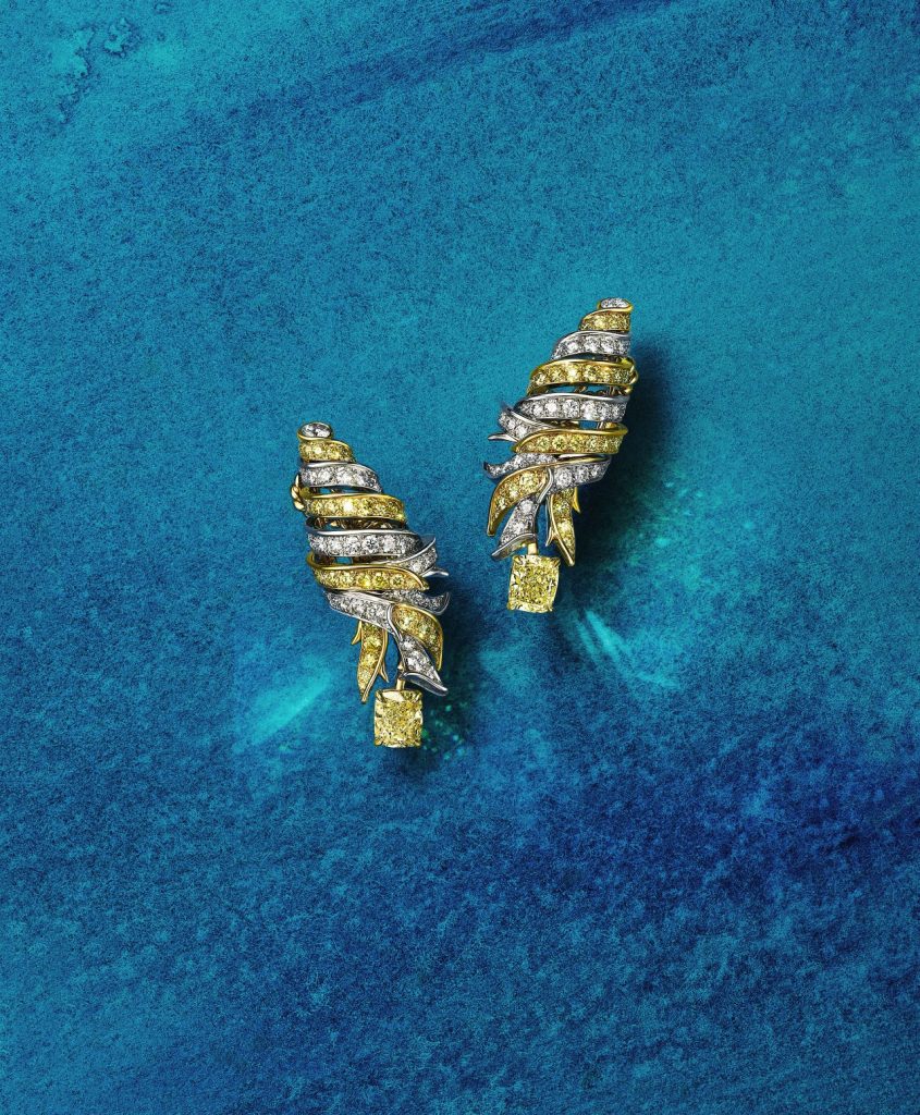 系列中每一個章節都像是海裡的一個片段,Anchor 系列重塑了 Jean Schlumberger 在 1939 年的經典作品,以鑽石為核心,延伸出吊墜、戒指與手鐲。它們的幾何結構清晰而穩定,正如大海中錨的力量,帶來安定感。Anemone系列則與前者完全不同,其靈感來自奇幻的海葵胸針。主角是一條紅寶石項鍊,三顆總重近五克拉的紅寶石在金色線條與鑽石之間閃動,像被海水輕輕推動,充滿活力。