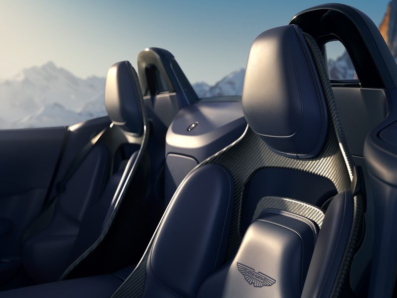 車身是 Provenance Range 手工調配漆色,在不 同光線下流轉出細緻層次。霧面碳纖維套件不高調 張揚,卻悄悄暗示著性能底氣。深色鍍鉻細節替整 體再加一層沈穩氣場。 21 吋鍛造霧黑輪圈讓車身姿態更貼地、有力量。真正讓人著迷的,還是打開車門後的那一刻。座艙鋪著具有質感的皮革,不是冷冰冰的感覺,而是有溫度的包覆感。坐進去的瞬間, 很像穿上一件剛好合身、剪裁得宜的皮衣。座椅的支撐則是剛好托住身體、而不是把你夾緊在桶椅裡。 再搭配 Bowers & Wilkins 音響系統,即使敞篷開啟, 依然能在引擎聲與樂聲之間找到舒服平衡,像是把高級音響移到公路上。