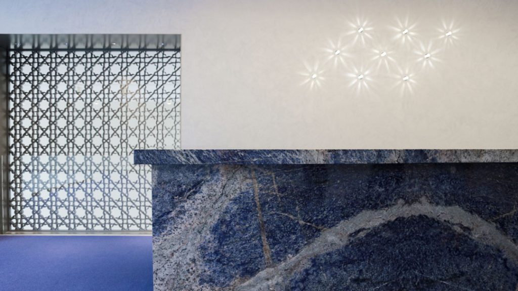 僅僅從外觀上看,曾獲建築界最高榮譽普利茲克獎的日本建築師槙文彥(Fumihiko Maki)所設計的博物館建築本身就可以說是一個藝術傑作。博物館面向北45度角,這使得每一片外立面都能在一天之中接受陽光的「洗禮」,巴西花崗岩則在日光下發散令人著迷的光芒。博物館的中心庭院則被槙文彥稱為「博物館的心臟」,玻璃窗上遍佈了靈感來自於阿拉伯傳統建築的鏤空花紋圖案,它們隨著光線的變化在牆上和地上印出美麗的圖案,裝點著中庭周圍簡潔的空間。