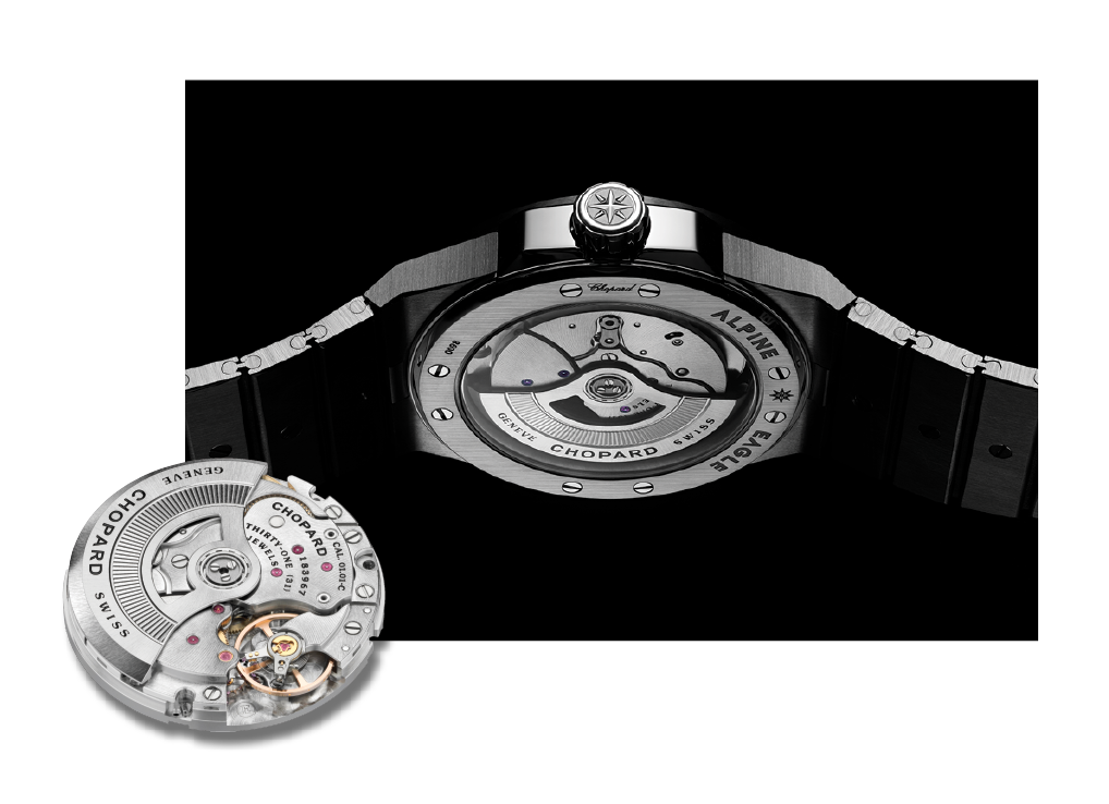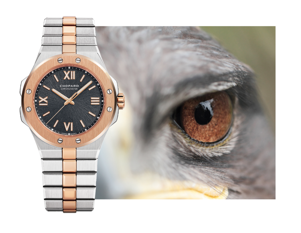 除了致敬美國建築大師路易斯.沙利文(Louis Sullivan)提出的「型隨機能」(Form follows the function)原則,Scheufele亦在Alpine Eagle系列中融入他對阿爾卑斯山脈的熱愛。腕錶的錶殼和錶帶呈現出一個不可拆分的整體,並採用了精緻的現代風格設計,思路上面充分借鑒了阿爾卑斯山麓的雄鷹及其生活環境。岩石般紋理的錶盤讓人不禁想起鷹的虹膜,指針讓人想起猛禽的羽毛,而冷冰冰亮閃閃的鋼鐵則是冰川的最佳比喻。