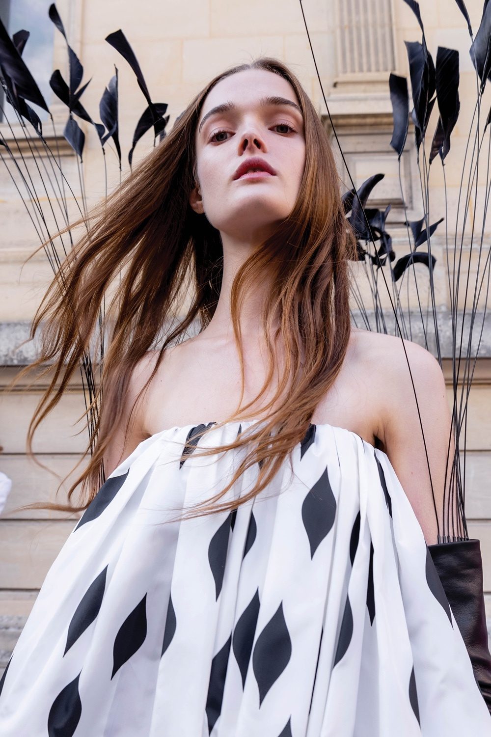 Piccioli將高級訂製的核心理念,在這個系列中呈現得淋漓盡致。他巧妙運用精準的剪裁和細緻的工藝,使得訂製服裝毋須炫目的裝飾,依然能夠展現極致的奢華。他特意將許多日常單品融入服裝中,乍看之下,這些單品似乎平平無奇。然而,牛仔褲上繡滿了80種色彩的細緻珠飾,猶如錯視畫一般虛實交錯;純白洋裝透過精確的剪裁,展現出不對稱的裙擺,流暢的輪廓猶如詩意的畫作;基本款背心、V領洋裝和襯衫,也透過巧妙的垂墜和剪裁令人驚嘆。宮廷鞋搖身一變綴有巨大蝴蝶結的平底鞋,展現出模特兒自信從容的氛圍,拉近了高級訂製與大眾之間的距離。