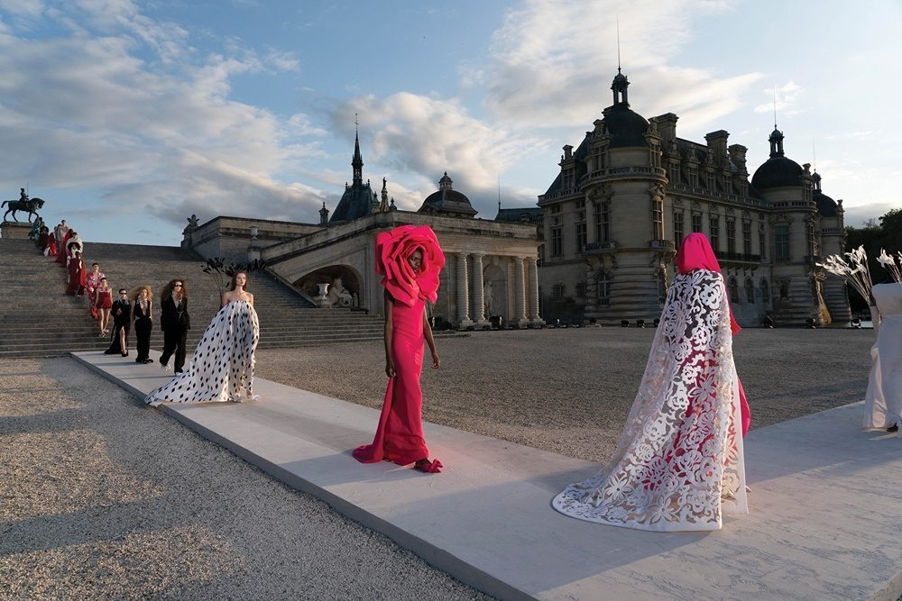 Valentino於2023秋冬高級訂製時裝展以「Un Château」為主題,舞台選址為巴黎近郊、歷史悠久的香堤伊城堡(Château de Chantilly)。古堡曾象徵精英主義和階級觀念,然而此次的時裝展中,選用「一座(Un)」而非「這座(Le)」的冠詞,暗示著這是一個不特定指涉哪一座城堡,抑或是屬於誰的城堡。在創意總監皮埃爾保羅‧皮齊奧利(Pierpaolo Piccioli)的重新詮釋下,城堡這一具有歷史背景、匯集人文藝術的場所,得以容納各種可能性,成為一個真正平等、讚揚美麗、個性和自由的公共舞台。
