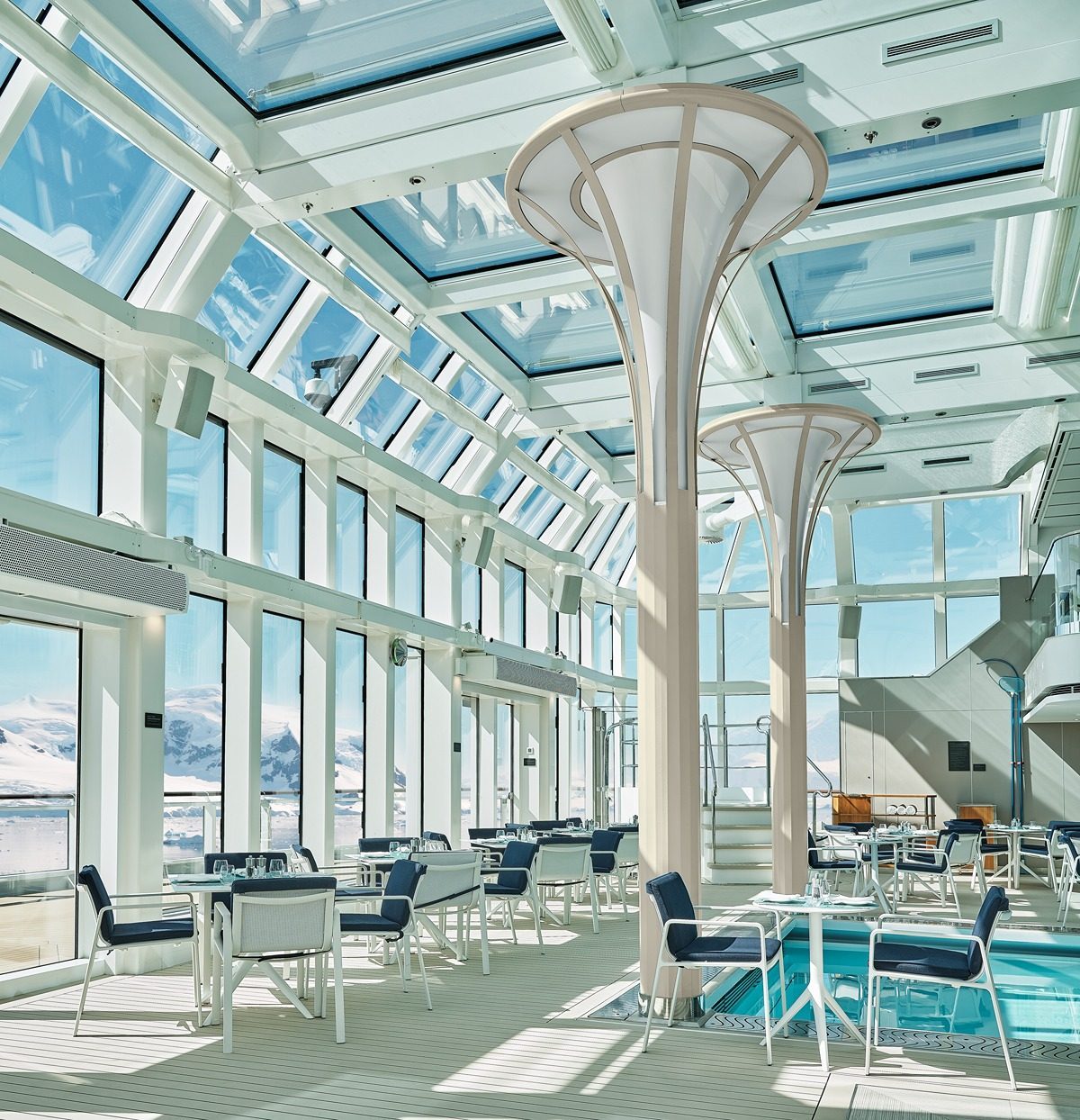 這場神奇的南極洲之旅由頂奢郵輪公司Silversea Cruise開啓,是其承運的 Silver Endeavour 號的處女航。 這是Silversea Cruise最新,且唯一提供私人管家服務和一對一員工與客人比例的豪華郵輪。 除了像是啞光金色内飾等,貫穿在每個細節之中的高檔設計,每個甲板都有令人心馳神往的全方位景觀。 無論是身處餐廳、酒廊,還是私人陽台,賓客都會瞬間被廣闊的自然風光所環繞。