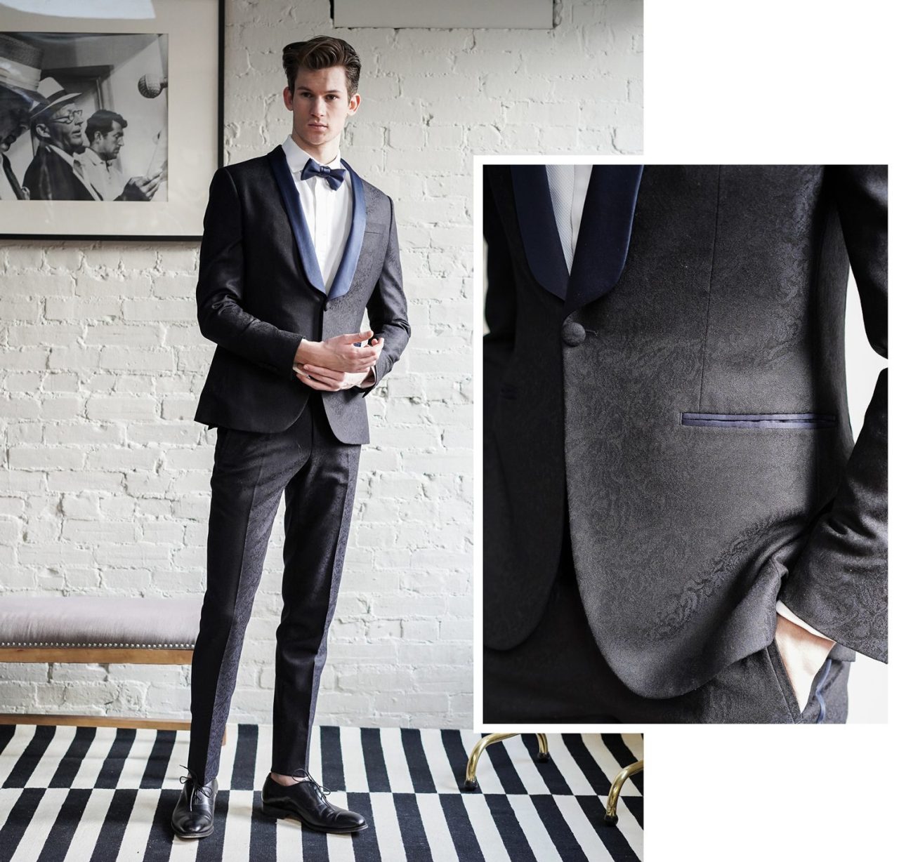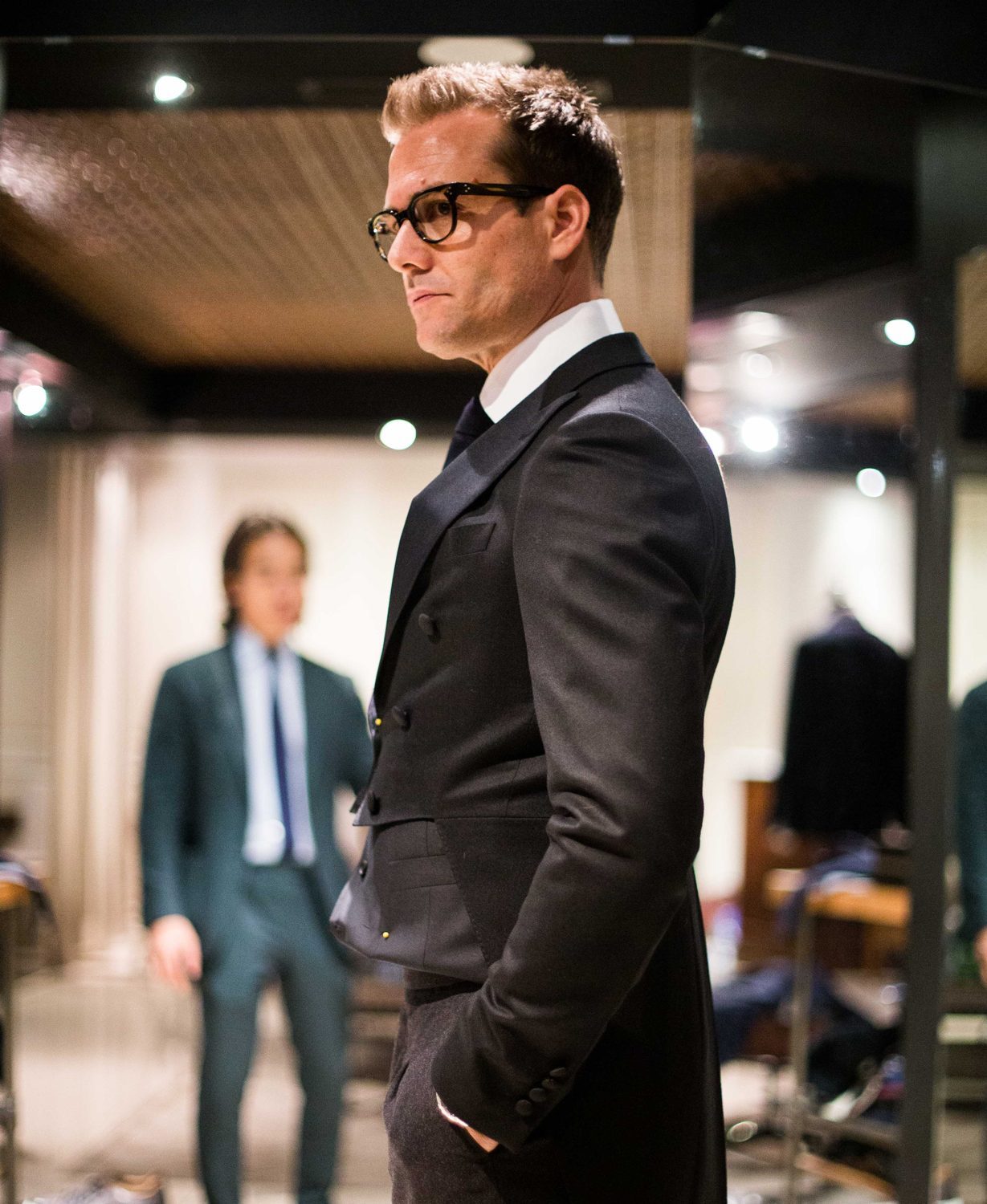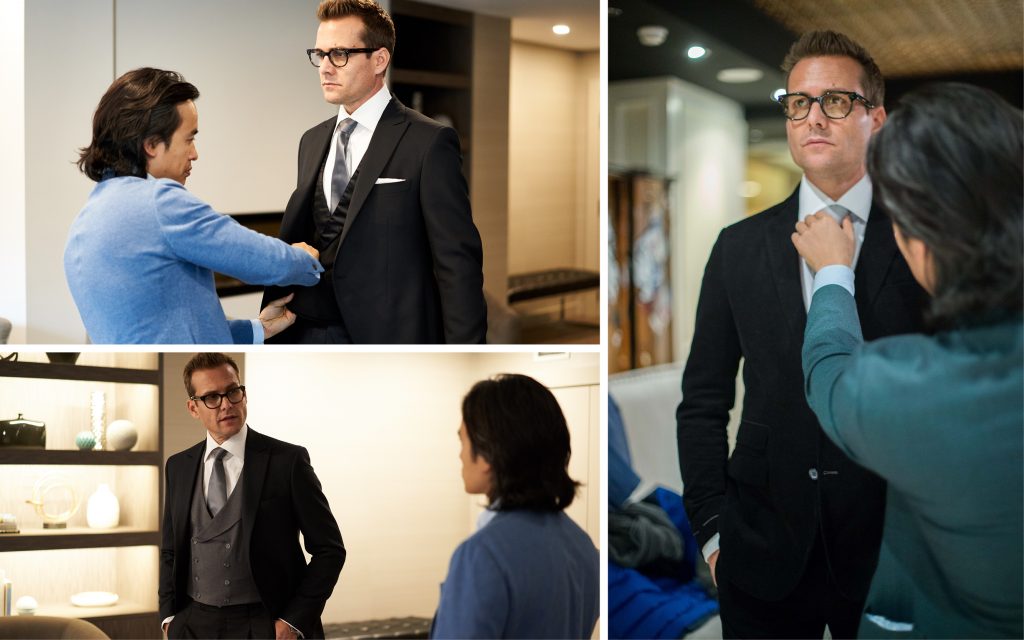 還記得那場舉世矚目的「哈利王子與梅根馬克爾」的英國皇家婚禮嗎?著名影星 Gabriel Macht 出席時穿的那套上乘經典的黑灰色燕尾服套裝,正是出自 Garrison Bespoke 的首席亞裔設計師之手。Macht 十分鐘愛這家西裝店,甚至他拍戲所需的西裝,也都訂製於這家店。最令人印象深刻的一個角色,想必是在《金裝律師》(Suits)中的那個精英律師,他總是以一身西裝革履的精緻裝扮,帥氣地出現在每一個鏡頭裡。每一套合身且剪裁精良的西裝,均是他的「名片」他身上那種不可一世的自信與霸氣,顯而易見。Garrison Bespoke 就是他的私人裁縫鋪,無論是熒幕裡還是生活中。