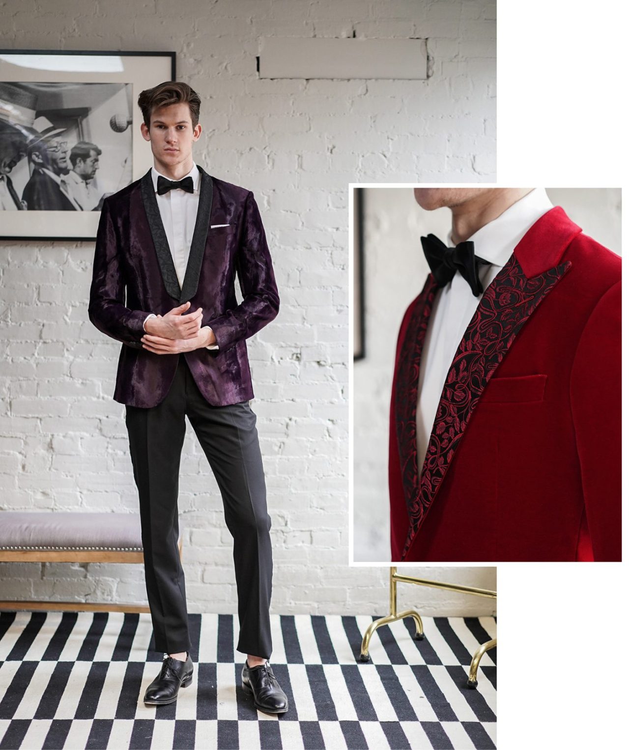在時尚的世界裡,永遠沒有一成不變的衣服。雖然男士的正裝看似沒有太多的選擇,但是 Garrison Bespoke 卻會巧妙地將當下的時尚潮流融入設計之中。燕尾服,風度翩翩,是出席婚禮的經典之選。誰說正裝就必須是黑色的呢?紫色與紅色的天鵝絨西裝,帶著暖暖泛光的奢華,貴族氣質盡顯。還有那若隱若現的全印花西裝,遠看與普通西裝並無二致,但仔細觀察,上面佈滿精細的花紋,好似過去老屋窗花,溫雅又低調⋯⋯