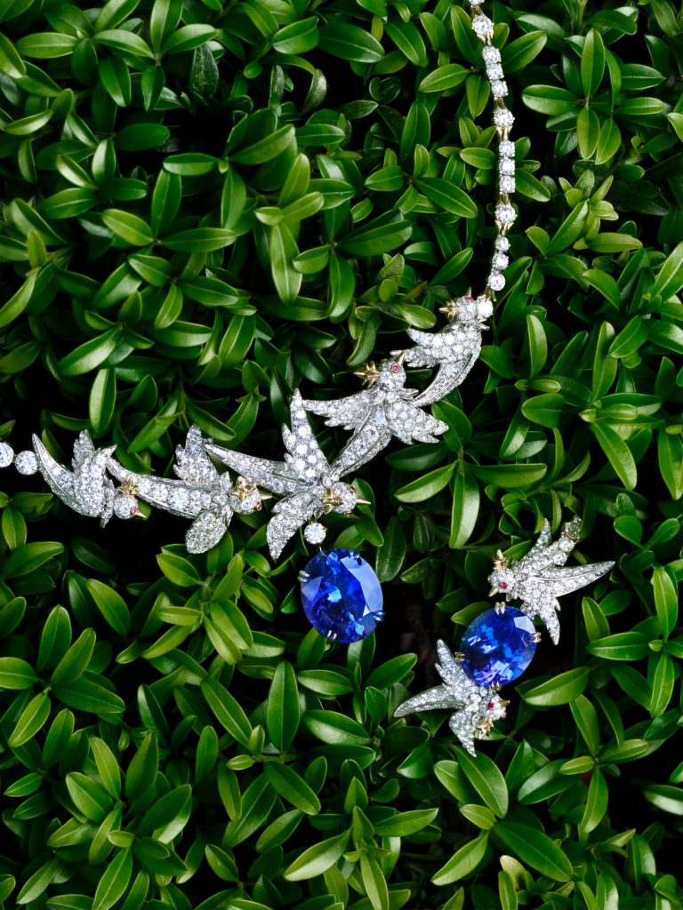 系列的設計核心是「翅膀」,從飛鳥的身姿、羽毛的層次,到翅膀的結構,每一個細節皆被納入設計語彙。高級珠寶部分包含兩大套組,分別以坦尚石與綠松石為主角。整套作品包含項鍊、手鐲與耳環,展現出濃厚的現代氣場。