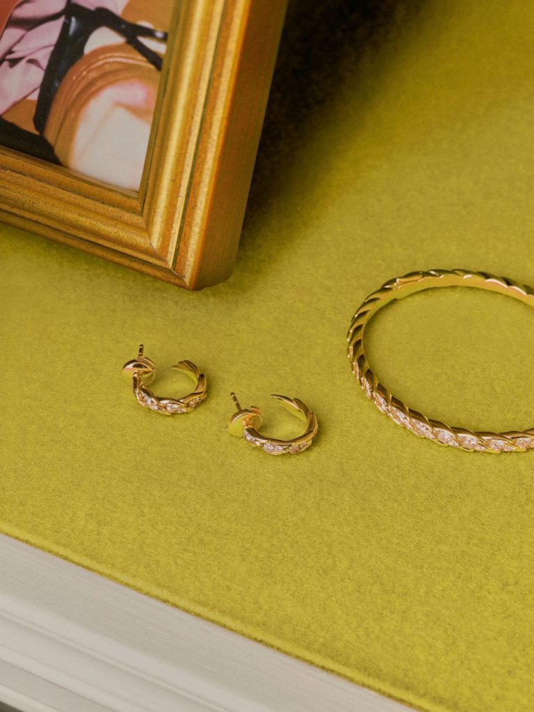 其中一對可轉換式耳環尤為搶眼,佩戴者可以選擇作為長型垂墜耳環、簡約耳釘,或其他多樣組合方式。設計上,羽翼形狀的輪廓彼此之間可以相互嵌合,達成形式上的和諧與趣味。這不只是設計的靈巧體現,更像是一種珠寶穿戴體驗上的進化。