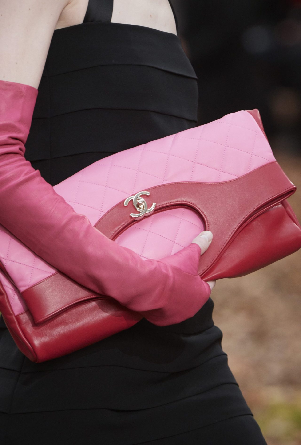卡爾・拉格斐為此時裝秀還打造了一款全新的包款,名為31,以印花、雙色、菱格紋、平滑漆皮的材質展現。珊瑚橘、漸層粉紅、紫紅或罌粟紅等繽紛色彩,與同色系露指手套相呼應,愈發亮麗。