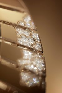 而臻品珠寶 Coromandel 系列的山茶花借鑒了東方屏風的構圖與造型,將花朵融於整件飾品之中——或是枝葉掩映下的花盤一角,或是流暢線條勾勒出的三五片花瓣,或是點綴於背景中初綻的幼小花蕾。在 Coromandel 系列花卉主題中,香奈兒經典的圓形花體幾乎沒有完整呈現過,但山茶花之典雅秀美卻展現得淋漓盡致,且更具一種通透清雅的東方風韻。佩戴於頸畔、腕上、指間的,不再是鑲金嵌玉的一朵花,而是靈韻流動、意境悠遠的一幅畫,一扇屏,一首詩。