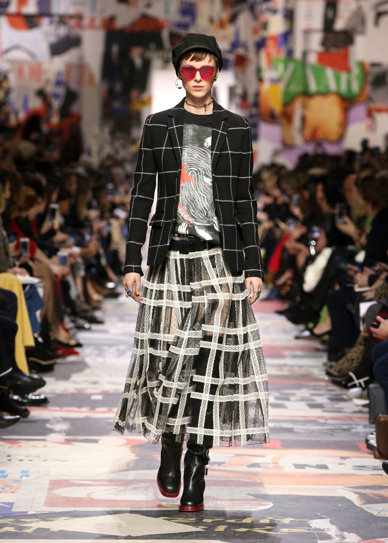 顯而易見,在 Maria Grazia Chiuri 設計的這場 Dior 時裝秀中,青春與叛逆是其特定的主題。這場沒有規則的混搭時尚——格紋學院制服、繡花透視紗裙、幾何印花的服飾,強調了女性兼具柔美浪漫卻不乏獨立的特性理念。總之,Chiuri 敏銳的時尚本能讓 Dior 這場秋冬時裝秀以強大的視覺形式塑造出一種新的人生態度,強調擺脫束縛、勇敢追求時尚的精神。