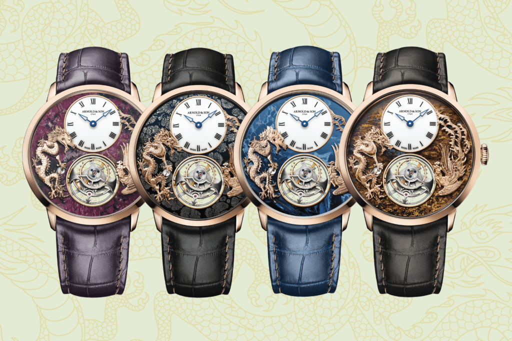 真龍與鳳凰,這是中華神話傳說中不可或缺的二位主角,它們在各種傳說中的出現也往往伴隨著祥瑞的意味,而二者的結合則更是容易引申出「龍鳳呈祥」的説法。以龍鳳為主角的工藝品,因其蘊含的美好含義,總能讓人心生喜愛。雅諾(Arnold & Son)就在不久前推出了一款超薄陀飛輪龍鳳戲珠腕錶——Ultrathin Tourbillon Dragon & Phoenix,以期帶給對中華文化感興趣的收藏家以祥瑞祝福。通過細緻入微的手工雕刻,龍鳳這兩個帶有神話色彩的造型在錶面之上得到了永恆。
