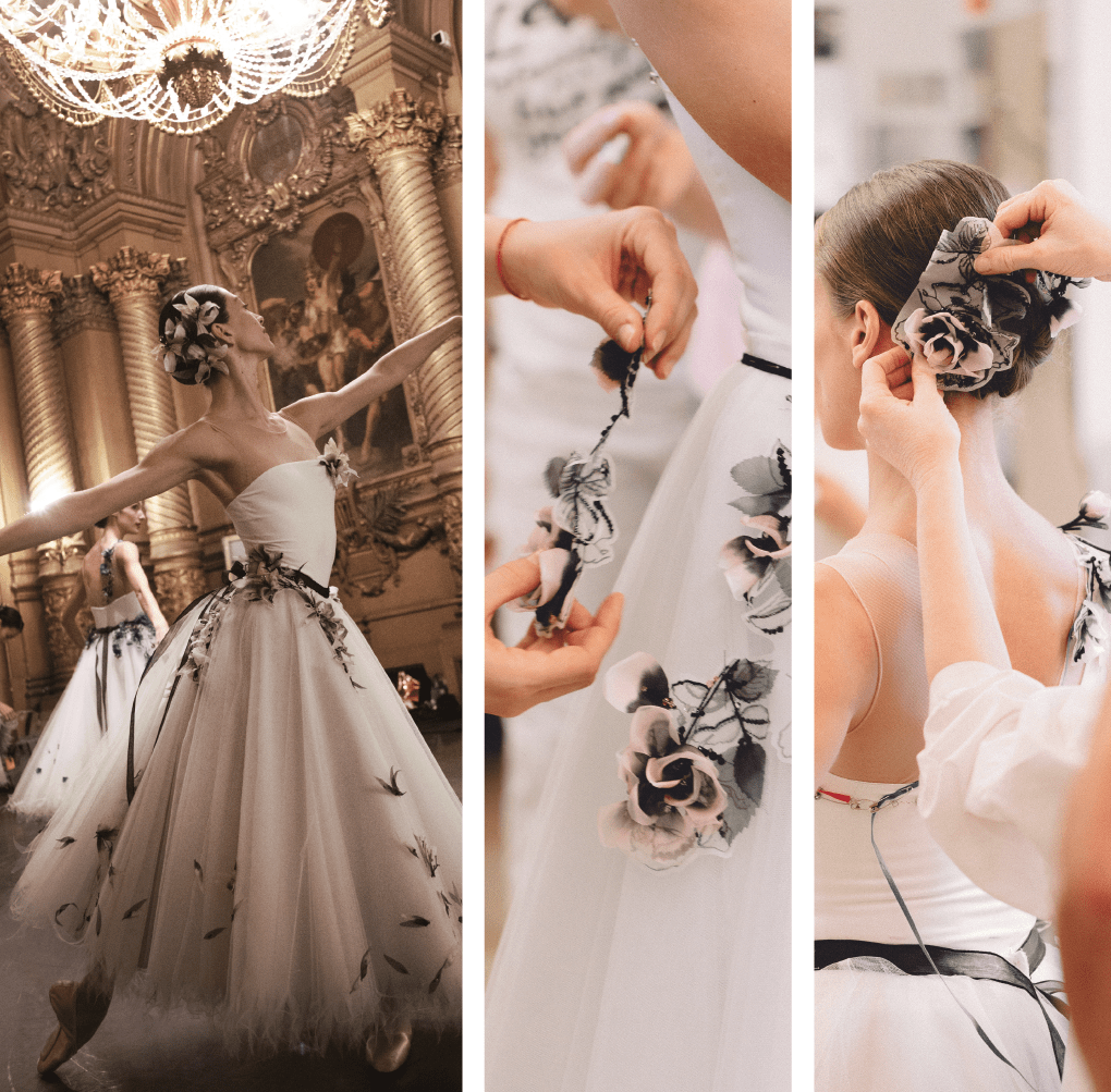 2018年,香奈兒成為國立巴黎歌劇團(Opéra de Paris)舞蹈季開幕盛典的贊助方。在近期的2019 / 2020舞蹈季開幕盛典,香奈兒現任藝術總監維吉妮.維婭(Virginie Viard)指導Maison Lemarié羽毛花飾工坊,為盛典上的芭蕾舞劇Variations中的女伶們創造出夢幻般的鑲立體花朵舞裙。薄如蟬翼的絲質烏干紗被手工裁剪成片片花瓣,並以不同顏色暈染,模擬真實花朵色彩。一圈圈的黑色細綫纏繞成逼真的枝椏,精巧珠飾和金銀絲綫穿梭手工製花朵、藤曼閒,呈現出美輪美奐的立體感。紫羅蘭、玫瑰、郁金香⋯⋯每一位舞者各自演繹一種花朵,在香奈兒的魔力之下化身「花仙子」。她們的每一次舉手投足、旋轉跳躍,都因為香奈兒巧奪天工的服裝設計而更為讓人動容。