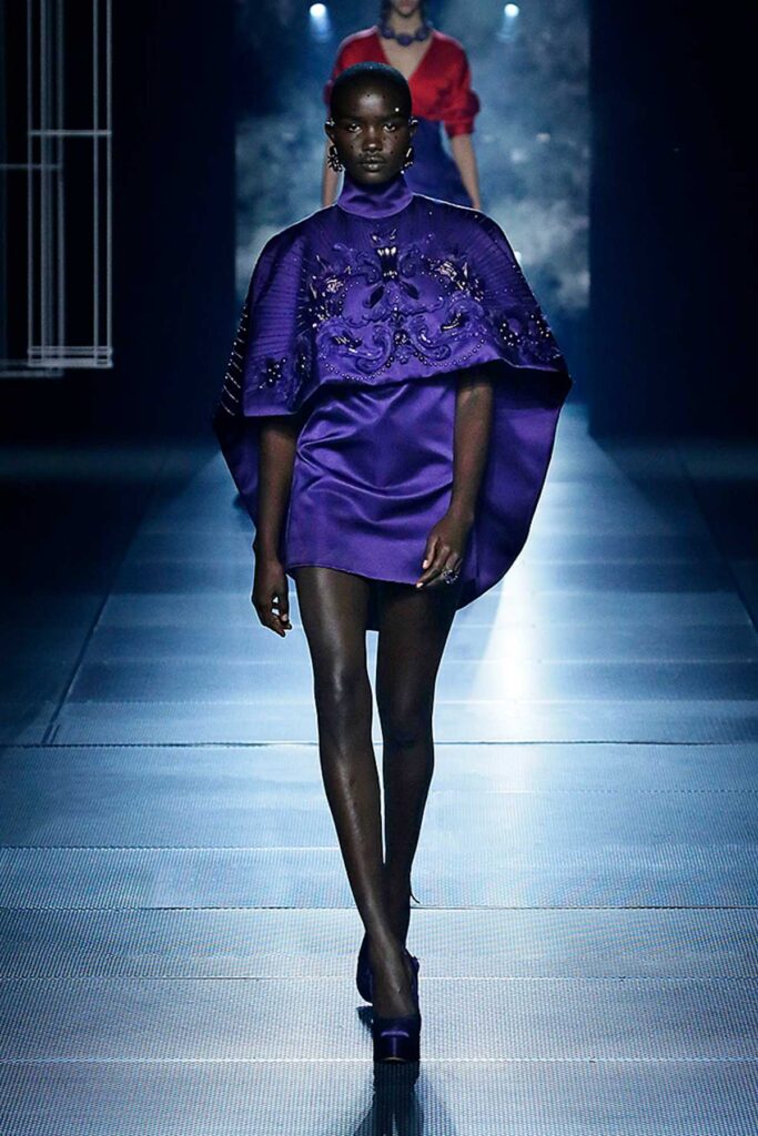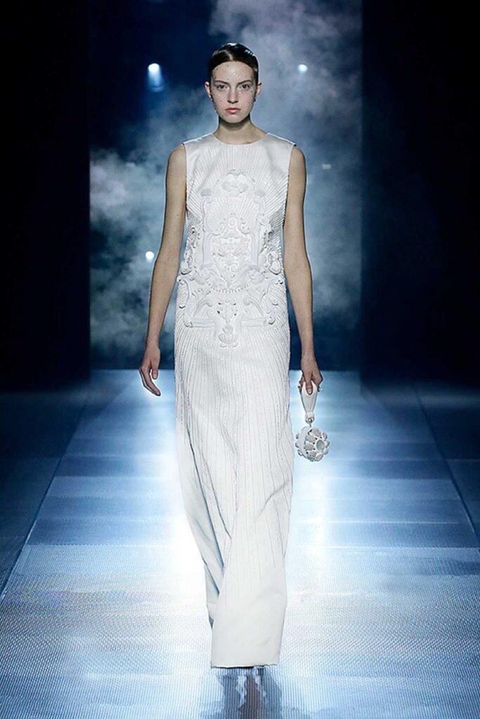 羅馬——芬迪誕生的城市,不論是曾經、現在,還是未來,都會是芬迪永遠的靈感源泉。品牌女裝藝術總監Kim Jones將他在羅馬城中感受到的,仿佛穿梭於不同時空的虛幻感融入設計當中。城中隨處可見的雕像以明暗對比手法手工繪製浮現于服裝之上,立體刺綉令人聯想到古典科林斯柱式的浮雕。同時,亮片的運用、大膽的裙裝剪裁,又在古典美學中注入現代感。這是一封由芬迪寫給羅馬的情書,讚嘆這座城市的靈性與永恆性。