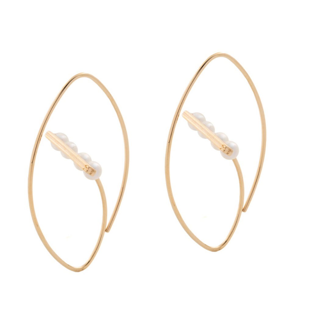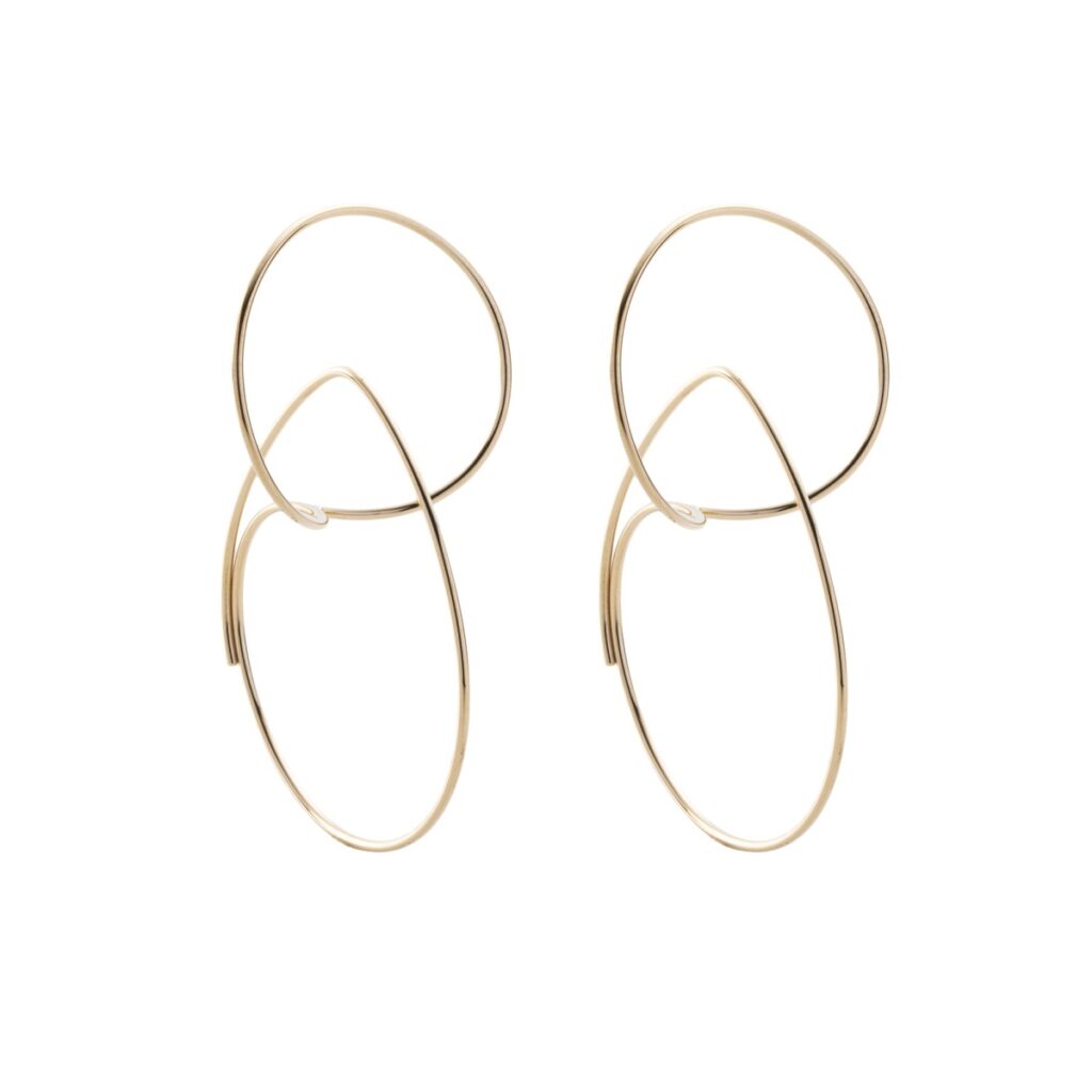 Hirotaka擅長運用簡單線條營造出輕盈而立體的藝術造型效果。Beluga Pearl Floating 耳環不同尋常地將海水珍珠反置於黃金框架上,模仿幾近滅絕的動物——鱘魚帶節的脊背,令人贊嘆設計師呼籲人們關注自然的巧思。Double Hoop Floating雙環耳環,圓環互相交纏卻不顯得過於繁瑣,技藝可見一斑。