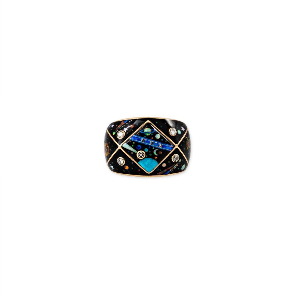 Jacquie Aiche GALAXY OPAL + ONYX XX 5 DIA BEZEL INLAY RING |