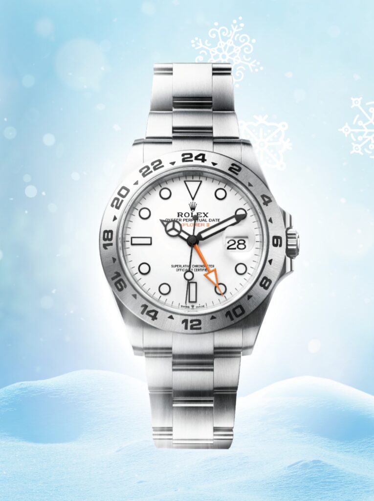 蠔式恒動探險家型 II 腕錶繼承了勞力士(Rolex)一貫以來的務實風格,精鋼打造的錶盤與錶帶、摺疊蠔式保險扣,以及防水蠔式錶殼,都是勞力士致以所有腕錶玩家的耐用承諾。此外,24小時鐘點標記、橙色小時指針和Chromalight藍色夜光顯示等功能則實實在在地幫助了許多踏上極地或深入洞穴的探險家方便快捷地閲讀時間、區別晝夜。這款探險家型腕錶搭配的是白色漆面,儘管這種純鋼材質與純白錶盤的搭配於勞力士的腕錶而言不算特別常見,但細細品讀卻又獨有一番風味,就像是雪後屋頂的一抹白,陡然遇見,心生歡喜。