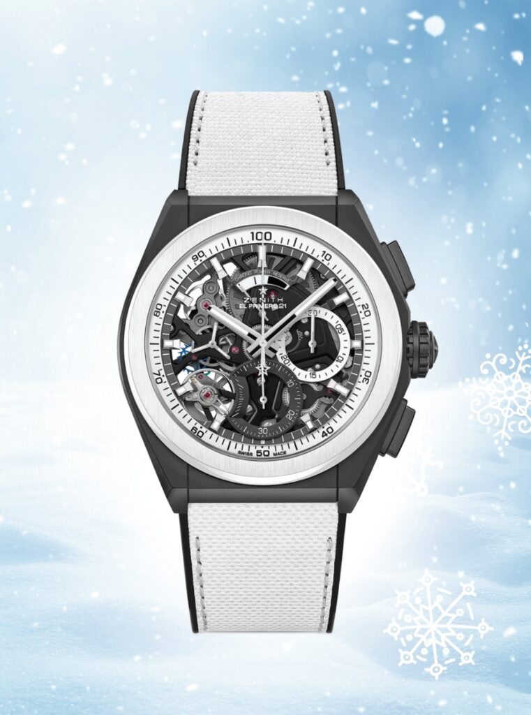 真力時(Zenith)Defy 21黑白特別版腕錶,摒棄系列常見的絢麗色彩,以簡單色調展現出迥然不同的風采。黑與白的強烈對比彰顯別具一格的設計語言,啞光黑陶瓷結合白陶瓷錶圈營造仿佛凜冬的酷炫冷峻之感。真力時同樣也是一個以功能見長的高端品牌,這款腕錶的招牌功能是高頻率機芯帶來的1/100秒計時,一旦開啟,錶盤中央最長的計時指針一秒即可轉動一圈,不僅在很多需要計時的場合非常方便,更能輕易俘獲機械錶迷們的青睞。