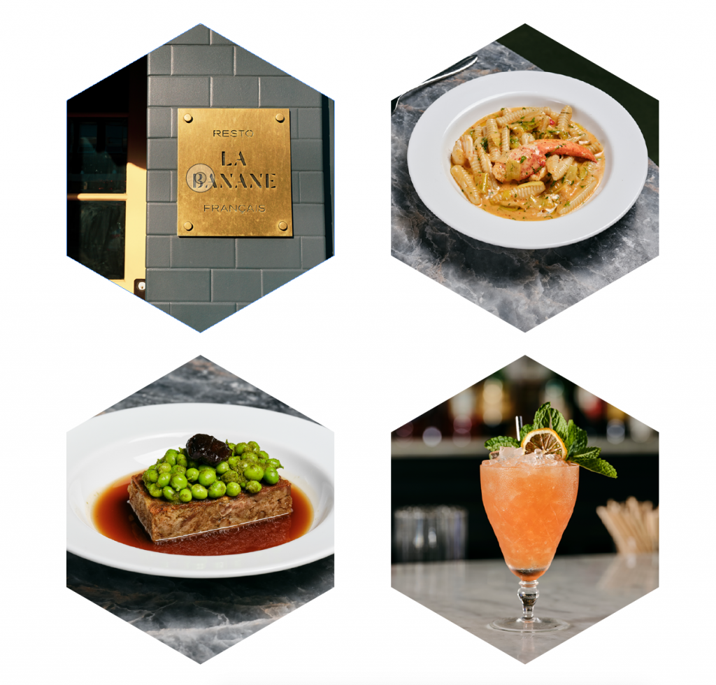 La Banane這個名字本身就已經玩味十足,而它的由來其實更加有趣。有一次,主廚Brandon買了一條印滿香蕉的上衣,對它愛不釋手。這件上衣簡直成為了他的一個標誌,後來主廚Brandon還搭配了一條帶有香蕉圖案的褲子來搭配它。Keenlyside對他說:「不如就叫新的餐廳Bananas好了!」但主廚Brandon覺得光是叫Bananas好像太隨意了些。兩人在法國旅行途中偶然得知Avoir la banane是鼓勵人們開心的意思,再加上法語聽起來總是有種高貴的感覺,La Banane就這麼誕生了。