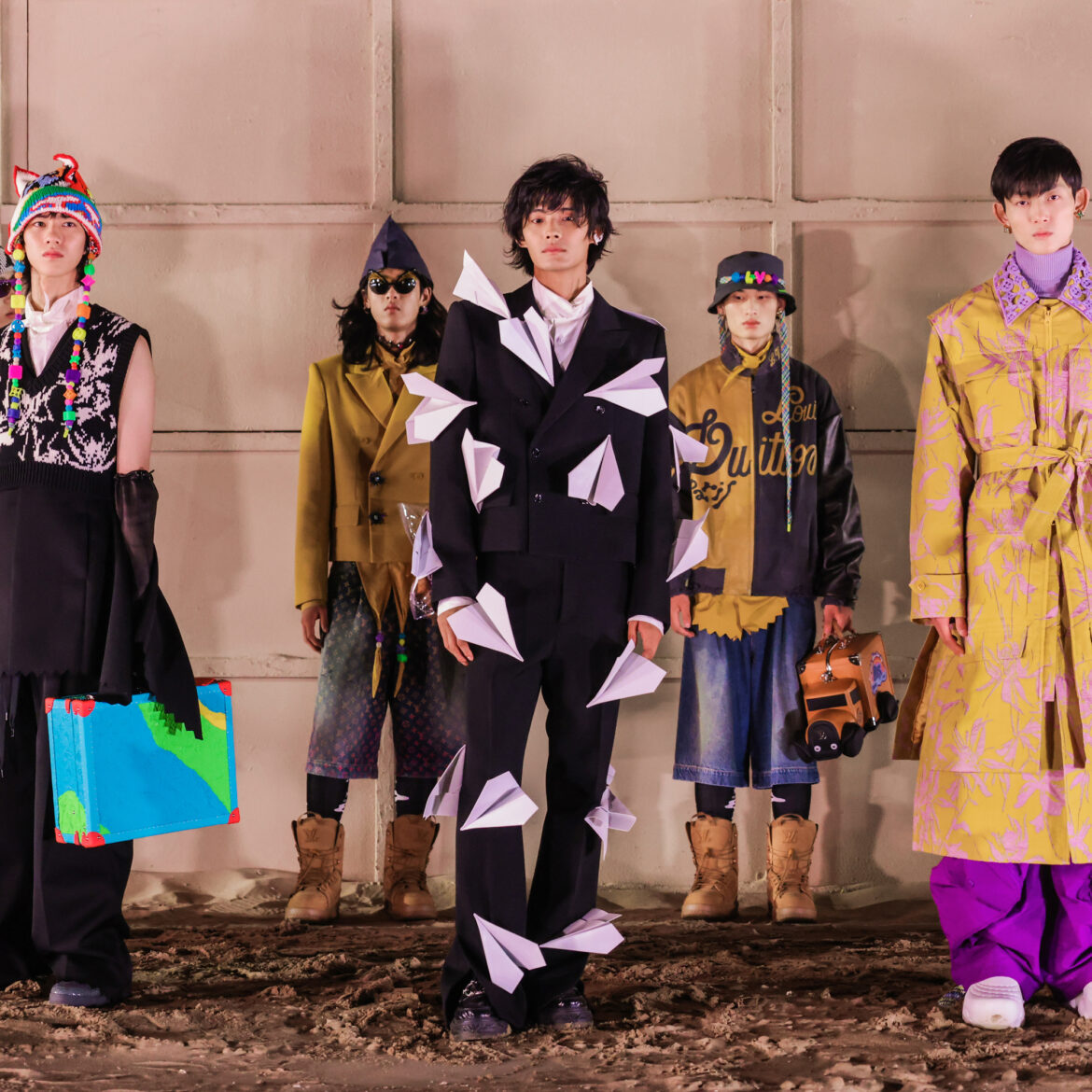 路易威登Louis Vuitton 2023 春夏系列Spin Off男裝大秀近期在中國阿那亞重磅舉行,秉承玩具承載著想象力的理念,本系列展現了從童真到成熟的轉變,借由路易威登精湛工藝升華童年意象,巧妙運用代表「童年衣櫥」 的微縮尺寸與代表「成年衣櫥」 的巨型尺寸。遊樂場與生俱來的元素比比皆是:折紙飛機、積木串珠、橡皮泥、卡通印花和挖沙工具飾件。