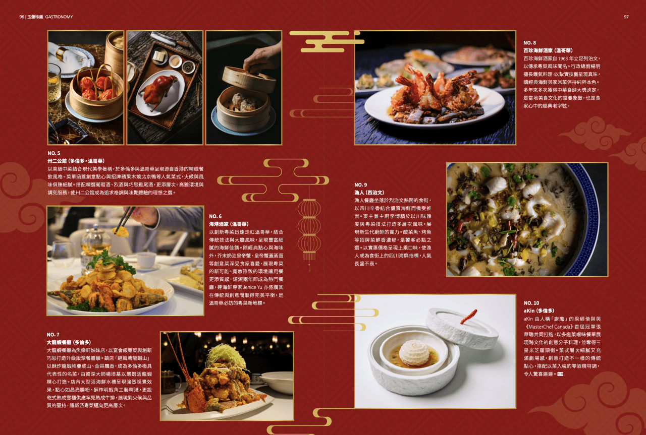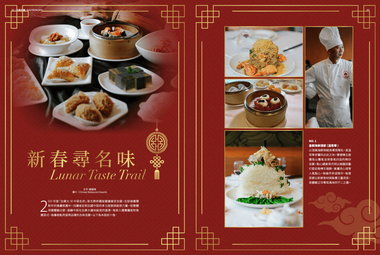 2025 年度「加拿大 30 中菜名府」首次將評選版圖擴展至全國,在迎接農曆新年的喜慶氛圍中,向讀者呈現加國中菜的多元面貌與創新力量。從整體用膳體驗出發,描繪中菜在加拿大遍地綻放的盛景,每家入選餐廳皆附推薦菜式,為讀者點亮值得品嚐的吉味佳餚。以下為本屆前十強: