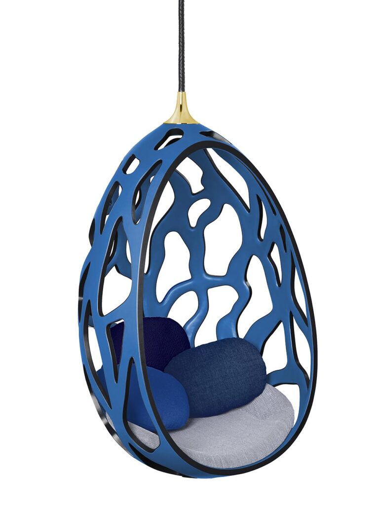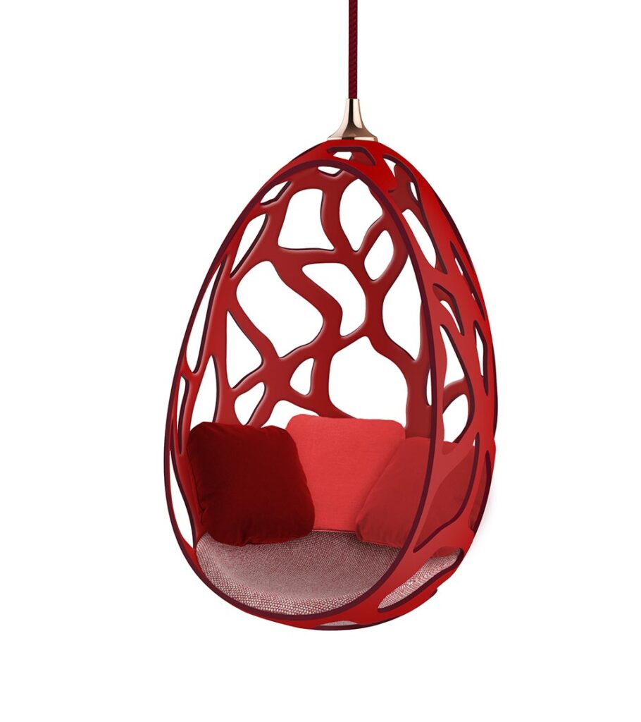 Fernando與 Humberto Campana兄弟設計的Cocoon吊椅,形如蠶繭,好像溫柔地形成了一個保護層,讓人短暫地忘卻掉世界的紛擾,此刻只需享受吊椅帶來的輕鬆和舒適。