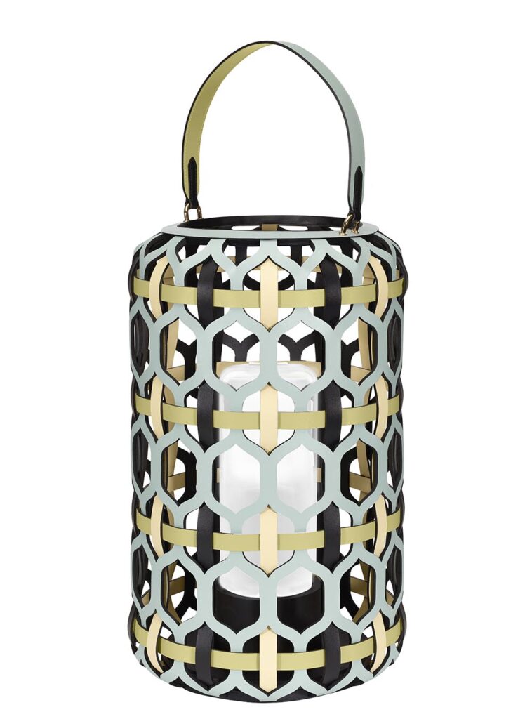 設計師雙人組Zanellato/Bortotto帶來的可充電便携Lanterns燈籠,古老的東方氣息結合現代科技,LED燈光透過以蜂巢為靈感源泉的皮製結構設計投射出浪漫與理性並存的幾何圖案,營造出一場溫暖的夏夜之夢。