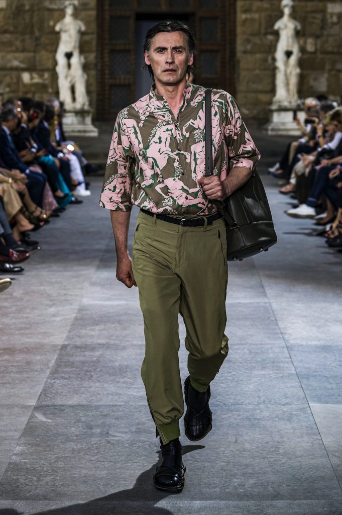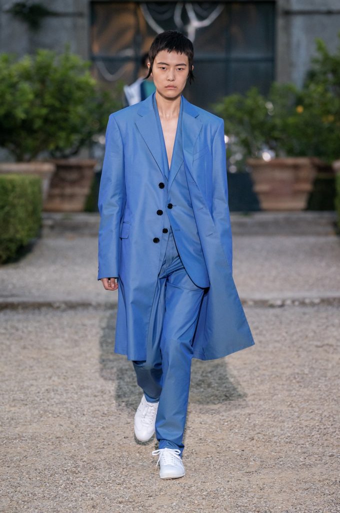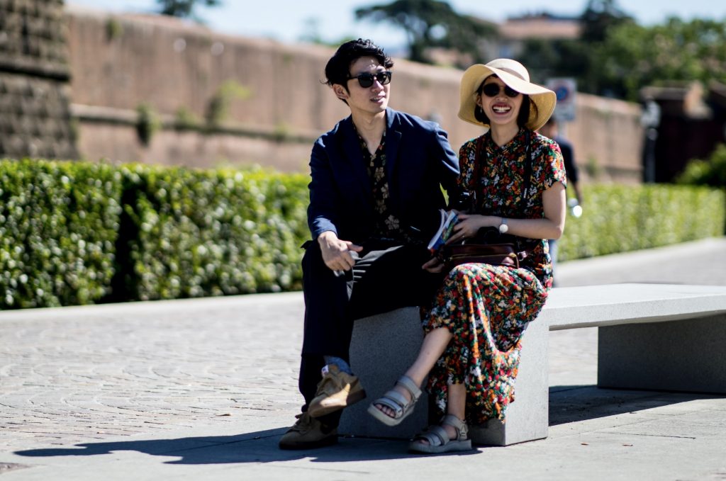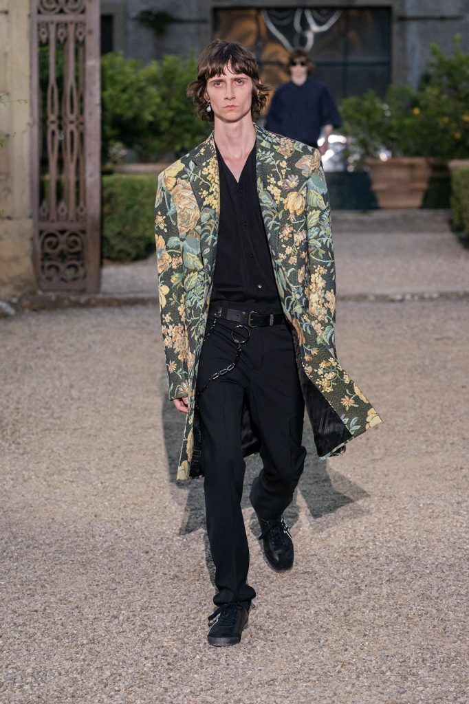 伴隨落日的餘暉,紀梵希Givenchy藝術總監Clare Waight Keller的首個男裝成衣秀也呈現在人們眼前。作為紀梵希的首位女性藝術總監,Waight Keller讓古典藝術與未來感科技碰撞結合,為紀梵希男性時尚注入了新鮮血液。這場時裝秀的場地Villa Palmieri是曾經讓維多利亞女王傾心的花園,當模特兒們從古老階梯拾級而下,彷彿也成為了一幅流動的畫卷。各式剪裁的西裝乾淨俐落,其中一款藍色西裝外套帶有不規整鈕扣,不僅沒有違和感,反倒有一種不羈的個性。靈感來源於夏爾·波德萊爾詩集《惡之花》的繁複印花則賦予了男性更多溫柔氣息。 Pitti Uomo從內到外都散發著一股時髦氣息。展廳與秀場之外,隨處可見精心打扮的紳士們。完美剪裁的西裝、印花精美的口袋巾、出挑而不失和諧感的風格混搭⋯⋯他們全身上下透露著一種極具質感的好品味,將經久不衰Dandy范詮釋地天衣無縫。在他們之中很難找到那些略顯刻意與浮誇的吸睛裝扮,而大多是在任何時候都能經得起推敲的裝束。畢竟,潮流可能很快退卻,而真正的時尚,則會在時間的長河裡,歷久彌新。