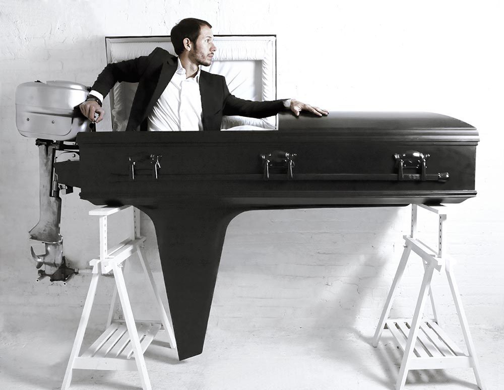 古埃及文明中,人們將死亡看作是另一段旅程的開端,當一個人逝去,他們會用往西去了(Westing)描述,就好似太陽從西邊落下,第二天又會從東邊升起。比起長度,或許生命的厚度才更加重要,如果每一天都認真且熱烈地活著,那麽死亡,也不一定是一件令人沮喪的事情。紐約藝術家、設計師兼社會活動家Sebastian Errazuriz正是以這樣一種直面死亡的心態,在2009年創作了作品《La Divina Comedia》,這背後的想法是——乘上這艘裝置引擎的快艇棺材,像一個出海的水手一樣華麗又瀟灑地和世界説永別。實際上,Errazuriz常常用他幽默、叛逆,甚至具有爭議性的創作手法,促使人們重新審視自身和生命,引發思考和再思考。在嘗試仔細領會之後你可能會發現,Errazuriz那些看似荒誕的作品,除了是他天馬行空的想法的出口,其實也是對各種當代社會現象的哲學反思。
