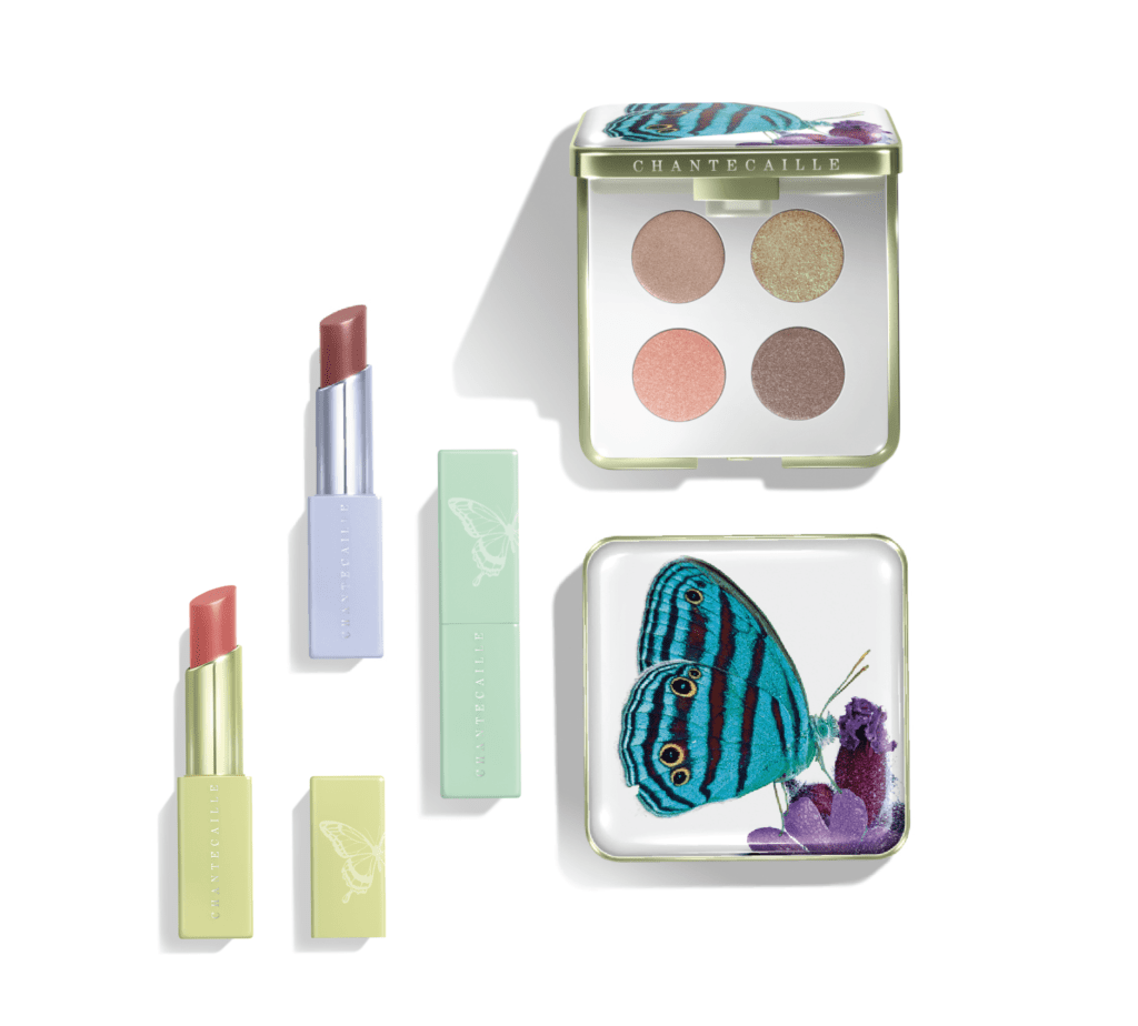 春天大地開滿的鮮花吸引成群的蝴蝶在其中飛舞——這美麗的畫面也成爲了香緹卡春季彩妝系列的靈感源泉。四色眼影盤運用偏大地色自然色彩,綢緞、珠光、微閃質地組合讓人聯想到蝴蝶翅膀的神秘美感。Lip Chic三款唇膏新色以常常吸引蝴蝶授粉的植物命名,添加玻尿酸成分,帶來保濕與豐盈的效果。