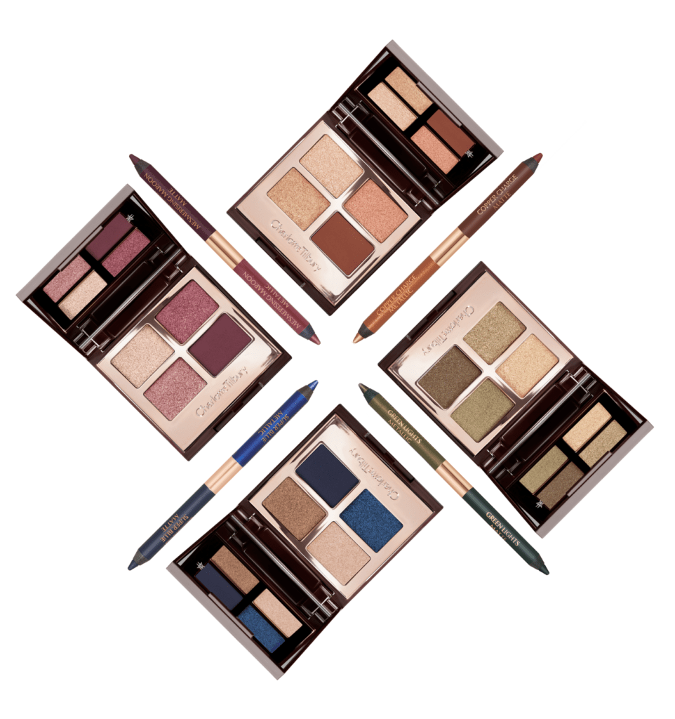 由於疫情,大多數時候人們將會帶著口罩,這樣的境況下讓很多人將美妝重點放在眼妝。Charlotte Tilbury推出四款全新四宮格Luxury Palette眼影盤,以及四款與眼影盤同色系的雙頭眼線筆,結合可打造出讓人過目不忘的眼妝。紅褐色、綠色、藍色和黃銅色系各有千秋,雙頭眼線筆一邊為金屬質感另一邊為啞光質感,可按照當日穿搭、心境、場合找到最適合自己的搭配。