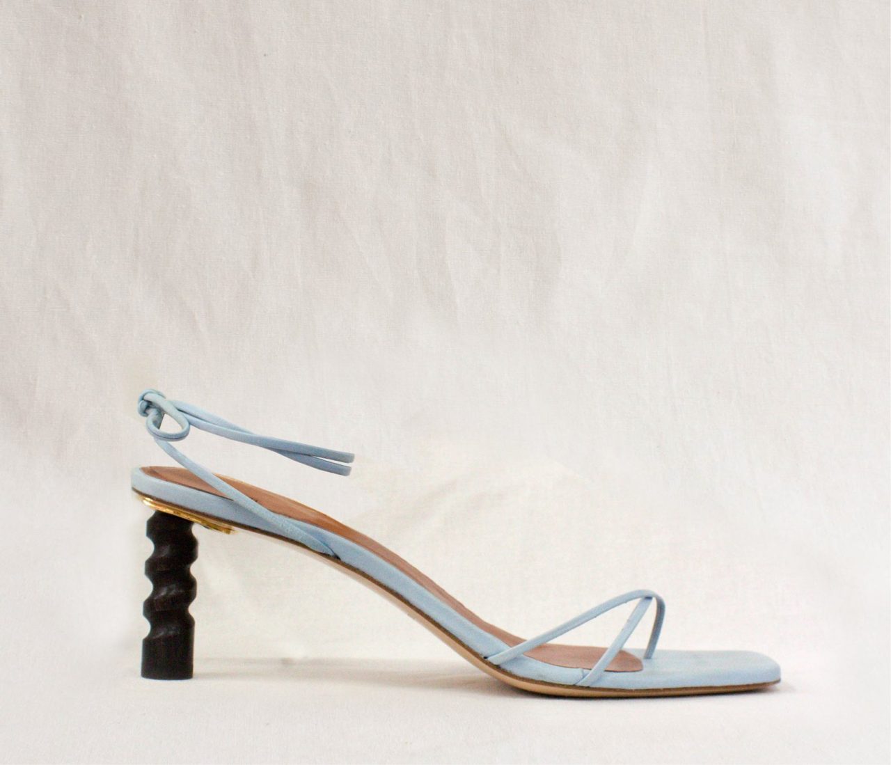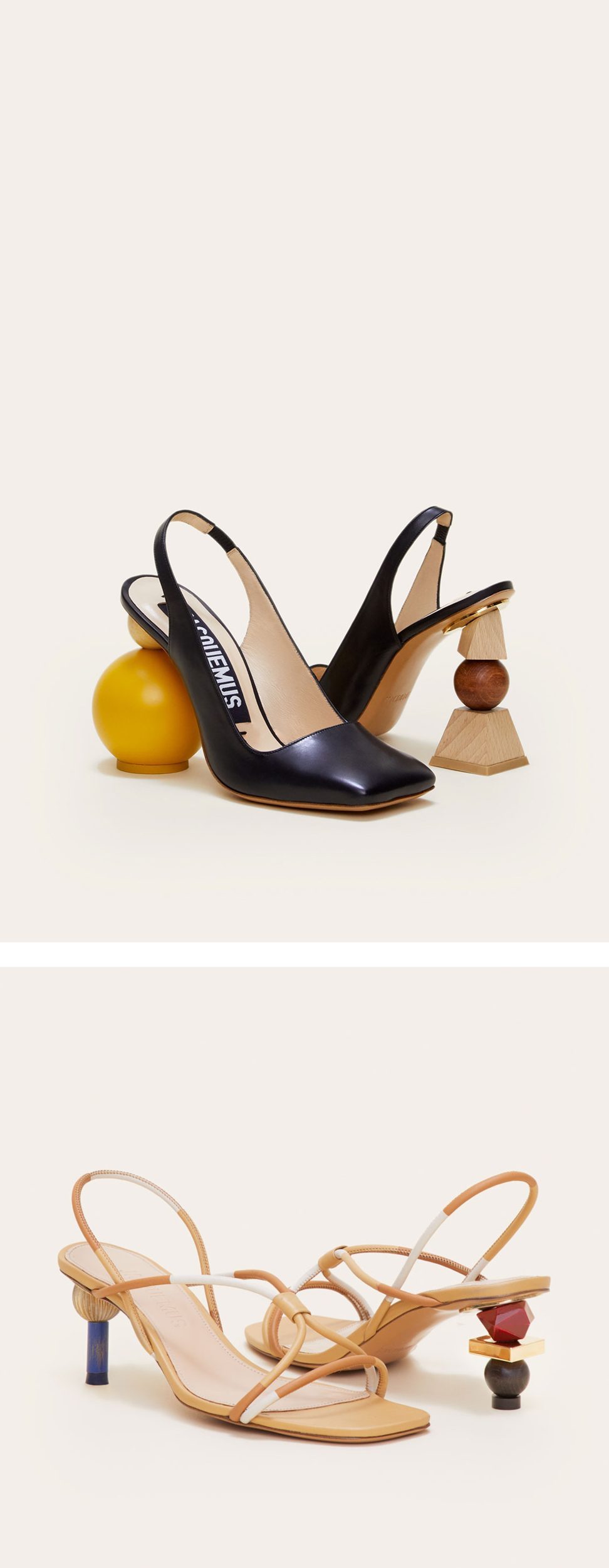 當談論藝術鞋跟,怎麼可以不提到時尚界新晉「鬼才」Simon Porte Jacquemus創立的同名品牌?他在對自己的介紹是:「熱愛藍與白、條紋、太陽、水果、圓圈、生命、詩歌、馬賽和八十年代。」可想而知,他的設計也是極富詩意、幾何元素,並且貼近自然的。Jacquemus上市十年,已經成為全世界時尚人士的寵兒、潮流的標竿。他完美地在設計中詮釋了法式的浪漫與前衛的現代感。