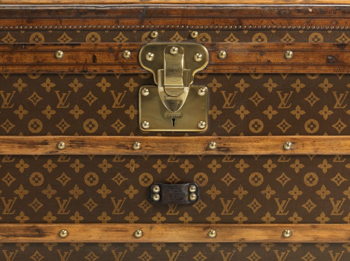 「Monogram」的誕生,源於一個極為務實卻充滿遠見的出發點。1896 年,Georges Vuitton為保護家族行李箱免於仿冒,親自設計並於 1897 年註冊專利,將交錯的 LV 字母與風格化花卉組合成高度辨識的圖案。這項設計深受新哥德式裝飾語彙與日本家紋(Japonism)影響,既具結構秩序,也富象徵意涵,使「Monogram」不僅能印刷於各種材質,更成為視覺上的「技術防線」。然而,這套圖紋很快超越了防偽功能,轉化為品牌精神的具象化表現。從早期亞麻提花織布到 1959 年革命性的塗層帆布,「Monogram」隨材料演進而不斷更新,卻始終維持其核心結構,展現設計在時間中的穩定性與延展力。