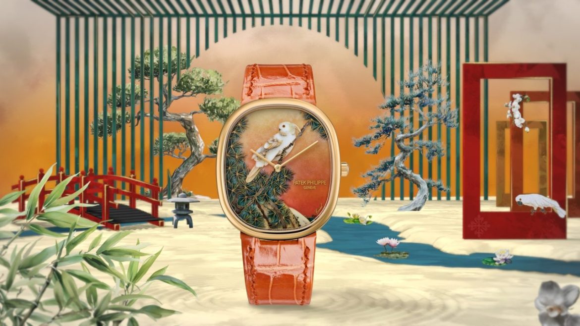 另一件焦點展品是 Golden Ellipse(黃金橢圓)系列的「小葵花鳳頭鸚鵡」(Cockatiel Watch)。錶面以掐絲琺瑯為基底,並以微繪琺瑯增添羽毛的細節與色澤。這隻鸚鵡神態靈動,羽冠與翅膀的金黃與白色交錯出層次感,眼神中透露出好奇與機敏。作品不僅是自然描繪,更融入了珍稀手工藝的複合技法,使得錶盤猶如一幅縮小的肖像畫。Golden Ellipse 的橢圓形錶殼本就象徵和諧比例,而這件作品在經典造型上注入自然主題,讓裝飾性與佩戴性達到絕妙平衡。當腕錶佩戴於手腕上時,不只是時間的載體,更像一件隨身的藝術品。