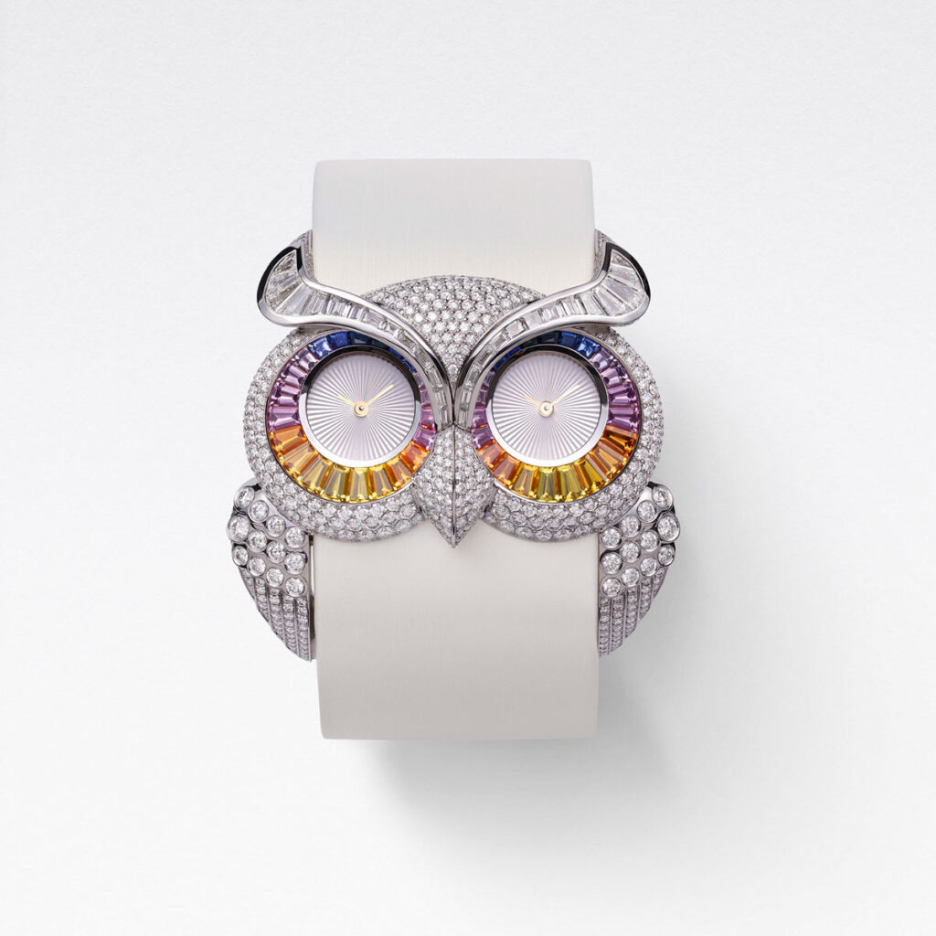 Chopard2020 Red Carpet Collection Owl Timepiece蕭邦自1998年起成爲戛納電影節(Cannes International Film Festival)官方合作夥伴,並在2007年推出Red Carpet高級珠寶系列,每年呈現與電影節屆數相等數量的臻品首飾,讓參展女星們在紅毯上愈發光芒萬丈。蕭邦對於電影產業的熱愛,正有如品牌全球創意總監兼聯合總裁卡羅琳•舍費爾(Caroline Scheufele)對於大自然和動物的熱愛。2020年Red Carpet高級珠寶系列正是以自然爲主題,致敬萬物生靈。其中一款簡約的貓頭鷹珠寶腕錶運用符合倫理道德標準的18kt白金,以明亮式切割鑽石、鞦韆形切割鑽石作爲它的豐盈「羽翼」。貓頭鷹的大眼睛周邊鋪滿彩色藍寶石,為造型注入靈動,增添活潑之感。 |