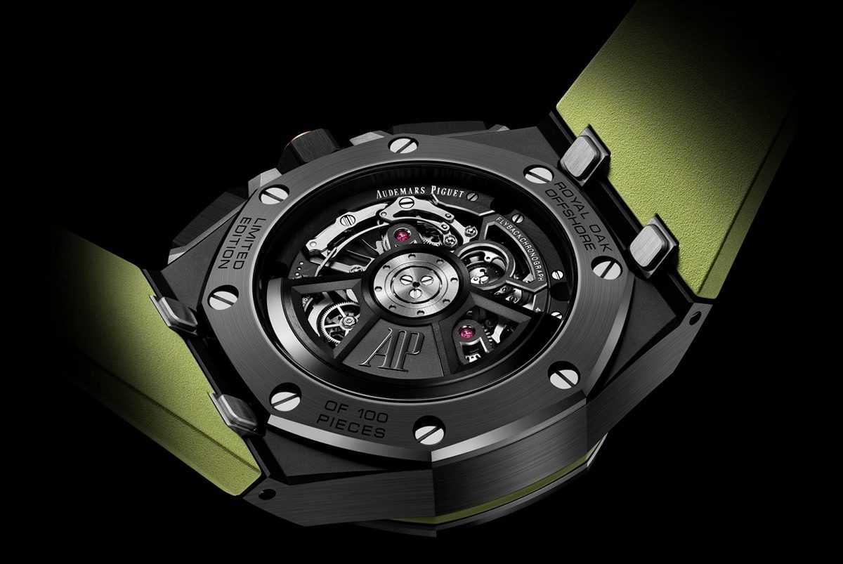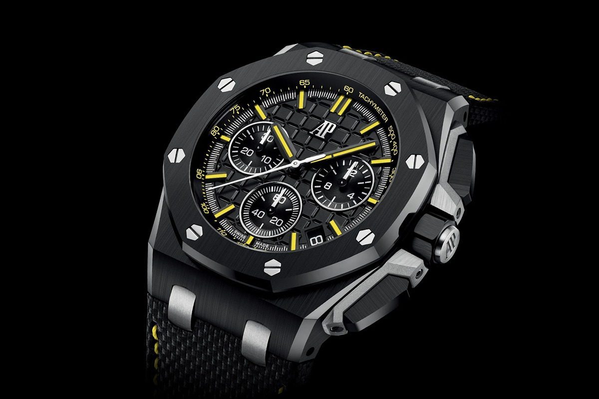 單色調款首次採用42毫米黑色陶瓷錶殼,搭配同色錶帶與黑色「Petite Tapisserie」小型格紋錶面,富有現代感。黃色細節款以黑色陶瓷重新演繹「魔鬼末日」紀念款,錶帶搭配黃色縫線與鈦金屬針式帶扣。黃金細節款搭配黃金製的計時按鈕護橋、錶帶接口和底蓋,呈現獨特的黑金配色,配上高對比度的黃金指針和刻度,營造出充滿活力和時尚感的視覺效果。腕錶搭載了愛彼最新的4401機芯,具有導柱輪和飛返功能,動力儲備長達70小時。