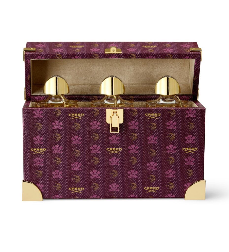 Creed成立近三百年首次推出以皮革禮品為主打的Leather Explorer Collection系列,以意大利頂級皮革手工打造香水硬箱The Trunk Rue de la Paix,可承載三瓶75毫升的Creed Royale Exclusive 系列香水,頗有頂奢風範。卡地亞香水配飾Les Nécessaires à Parfum系列靈感源自20世紀初的卡地亞化粧盒,精巧而便攜,鎸刻、裝飾細緻入微,宛如一件手掌中的藝術品。如果你想要對他人或自己表示贊美和喜愛,不如將千言萬語匯成一套Tom Ford私人調香系列Fucking Fabulous禮盒。