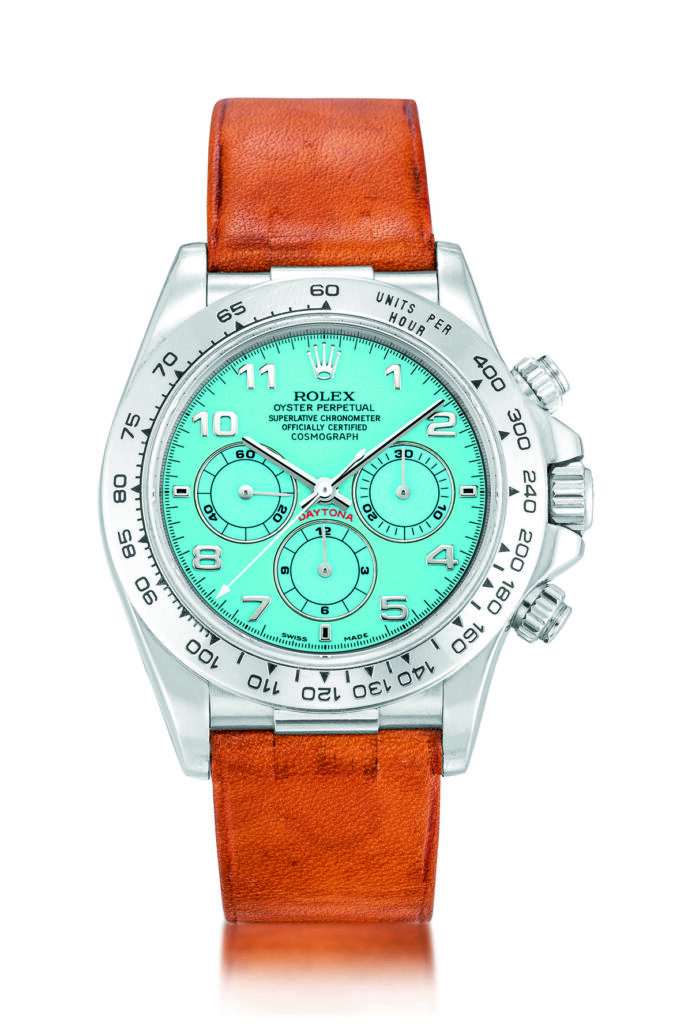 2021年四月蘇富比將在香港拍賣的勞力士 Ref.16516 Zenith Daytona 蒂芙尼藍 Stella 錶盤鉑金腕錶