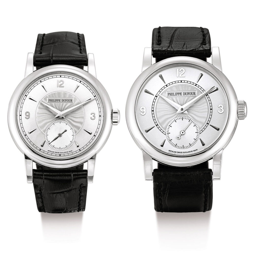 Philippe Dufour Simplicity 編號 100 鉑金腕錶,以5,136,000 港元成交,逾估價3倍。 Philippe Dufour Simplicity 編號68白金腕錶以 3,528,000 港元成交——兩者都刷新了品牌 Simplicity 錶款同尺寸腕錶的成交記錄。