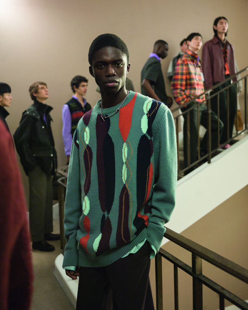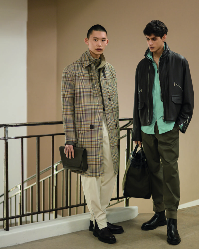 愛馬仕2021秋冬男裝系列線上大秀由Cyril Teste導演,屏幕被分割成七個大小不一的視角畫面可隨時點擊切換,為秀場看客提供非常細節化的多角度觀看體驗——這甚至比坐在秀場第一排更能清楚地觀察成衣細節。模特們穿行在法國巴黎Mobilier National大樓階梯上下、内外之間,一改平日走秀的嚴肅拘謹,模特們擺脫空間束縛,自在地演繹著偶遇寒暄或是微笑談天的場景,也更容易讓人們帶入穿著愛馬仕成衣的感受。這場愛馬仕成衣秀中,各種元素互相碰撞出火花。愛馬仕紅、紫藤色等等明艷色彩與甘草、石油藍之類更爲沉穩的暗色調完美地結合;嚴謹剪裁與工藝混搭不對稱圖形、隱形口袋等趣味設計……愛馬仕此系列模糊了休閑裝和正裝的界限,為時尚帶來更多的可能性。