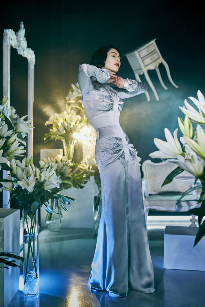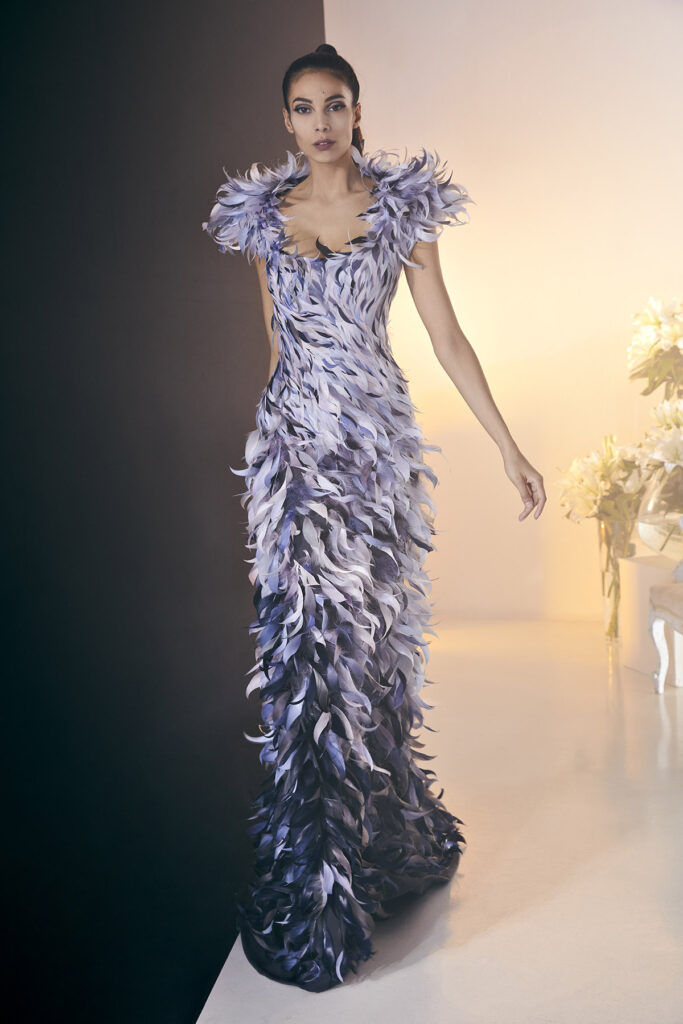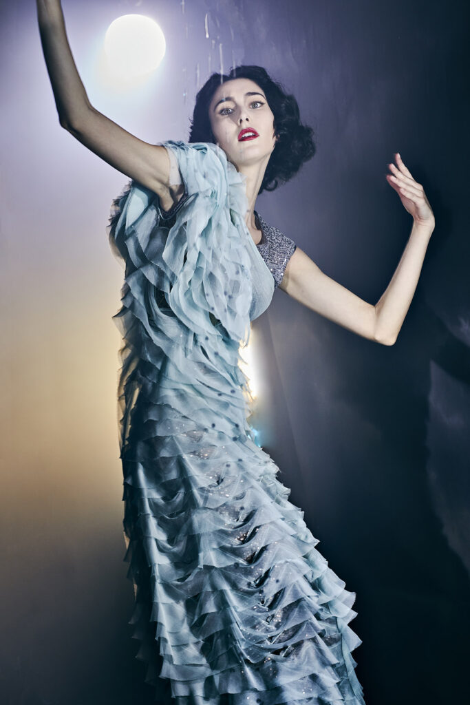 疫情是一種限制,然而對於法國設計師Julien Fournié,它卻成了能夠探索更多身份的契機。他搖身一變成了一位導演,為Julien Fournié品牌2021春夏高訂秀編排、拍攝了影片「第一場暴風雨」(First Storm),在這個飽含焦慮與疑懼的時代,為人們創造出一場奇幻夢境,提醒我們,這世上還是有許多美好的存在,想象力也能成為避風港。影片中三位女子仿佛掉進兔子洞的愛麗絲,身著時刻變換的高訂禮服穿梭於不同場景,好奇地探索著,設計師本人則化身神秘「導師」,指引女子發掘真實的自我。精簡剪裁和極緻線條將女性身材襯托地愈加修長,刺綉、半透明薄紗、羽毛等材質的使用毫無保留地展現女性溫柔氣質,禮服本身與故事同樣具有吸引力,讓人沉迷於Fournié製造的幻境。