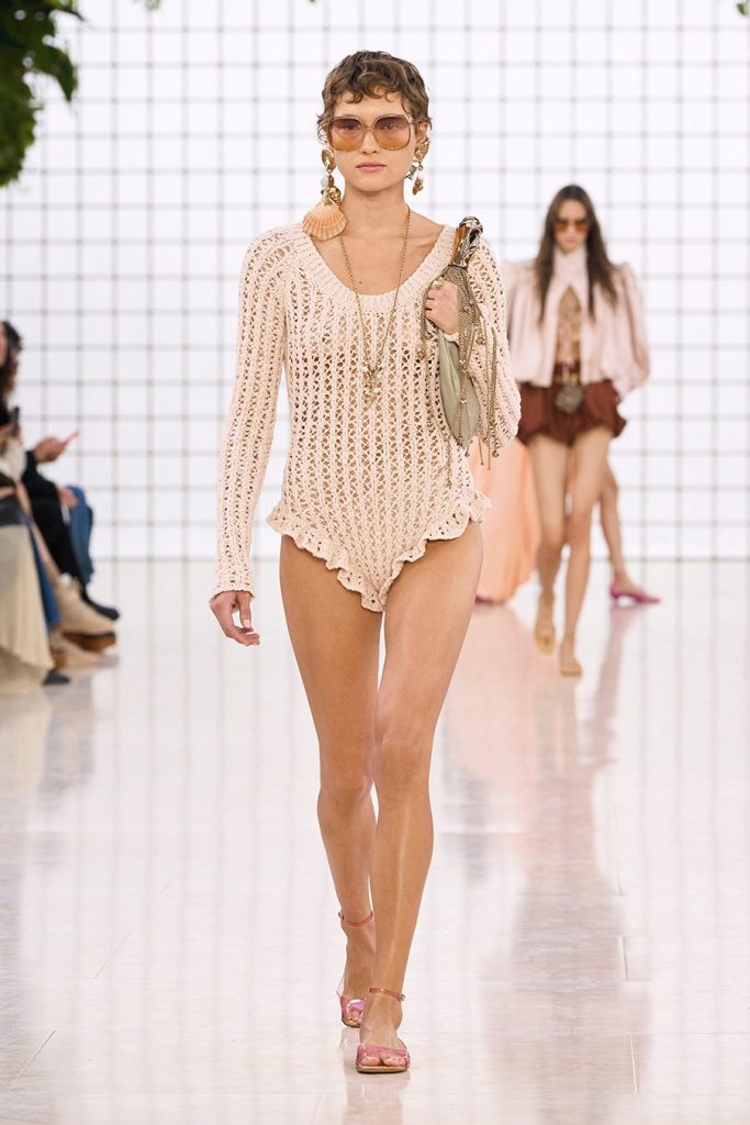 鞋履方面,本季推出了鉤織手袋與酒椰葉製成的天然材質包款,搭配 Maxime 厚底鞋、透明涼鞋與綁帶芭蕾平底鞋,使整體造型更加豐富多元。這些細節的運用,不僅讓本季系列更具層次感,也進一步展現了蔻依一貫的自然主義美學,將法式浪漫與大自然的元素完美融合。